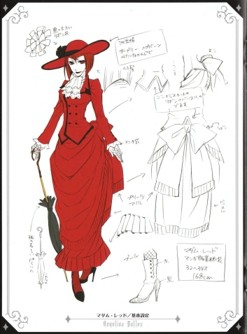 Madame Red war ihren Neffen, Ciel Phantomhive, mit Lau und Lan Mao besuchen. Sie redeten mit Ciel über einen Schmuggelverdacht. Als Ciel in sein Zimmer ging, war nichts mehr von ihm zu hören und auch Sebastian sagte nicht, was passiert sei. Madame Red machte sich trotzdem Sorgen, als sie mit der Kutsche wegfuhren. Lau konnte sie jedoch leicht beruhigen, da sie sich auf Sebastian verlassen können.